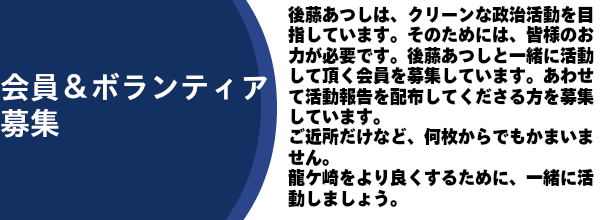印刷用表示 |テキストサイズ 小 |中 |大 | 龍ケ崎市議会議員 後藤あつし公式ホームページ